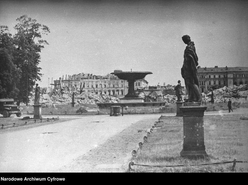 Przed budynkiem stanął pomnik księcia józefa poniatowskiego, a w 1925 r pałac saski. Ruiny pałacu brühla (pałacu ossolińskich).